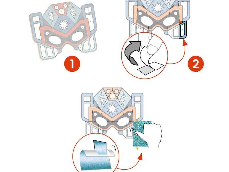 Transform children's playtime into a robot universe with this exciting kit. Get ready to create 4 Super Robots masks with metallic details that will make little ones feel like they are part of the action. The adhesive areas on the masks allow you to place the foil easily, and the numbers on the step-by-step instructions make it effortless. The material settles like magic, and the masks gleam with metallic sparkles for an incredible effect.