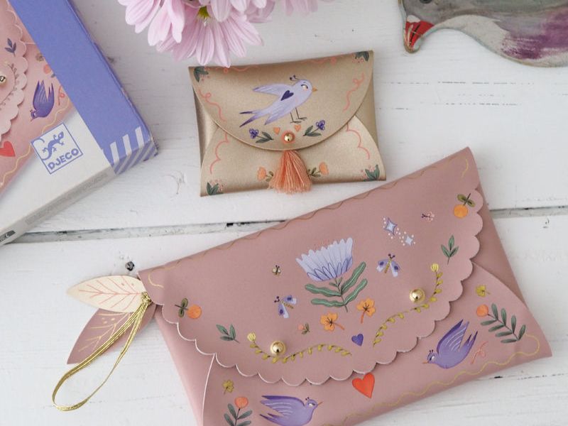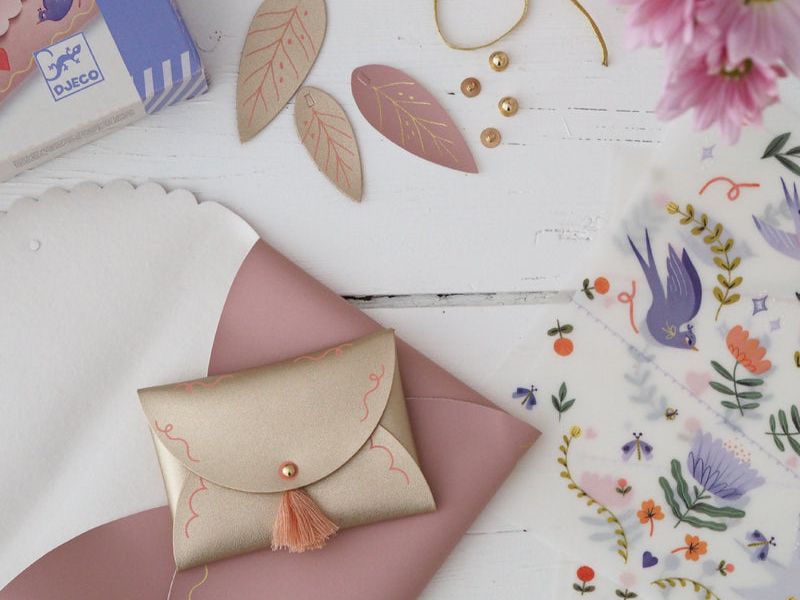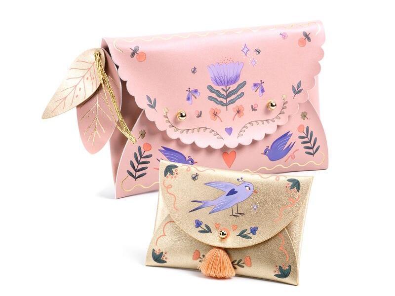 A creative kit to make a set consisting of a matching pouch and coin purse in synthetic leather. Using a pencil, children rub the decals to transfer them to the pockets, following the models offered or according to their wishes. Then, they assemble each pocket using the screw clasps, add the pompom, the wrist strap and the pretty imitation leather decorations. More than 100 decals to decorate the pockets. Easy assembly without glue or scissors thanks to the pre-cut elements and the clever screw-clasp system.