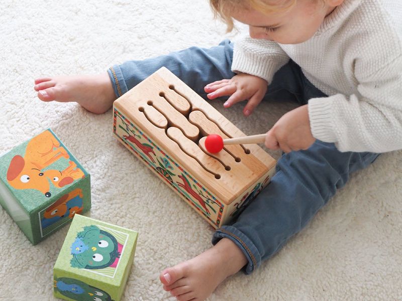 This gorgeous drum is designed to create a rich and relaxing sound. The design features birds and horses. The tip of the drumstick is made of rubber. The perfect instrument for starting to appreciate music, to learn to recognise sounds, and developing a child's sense of rhythm.