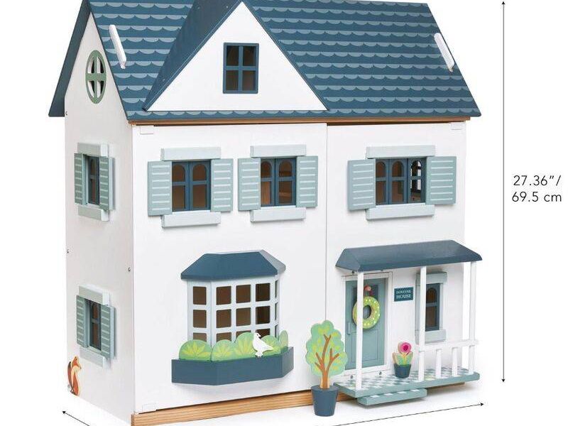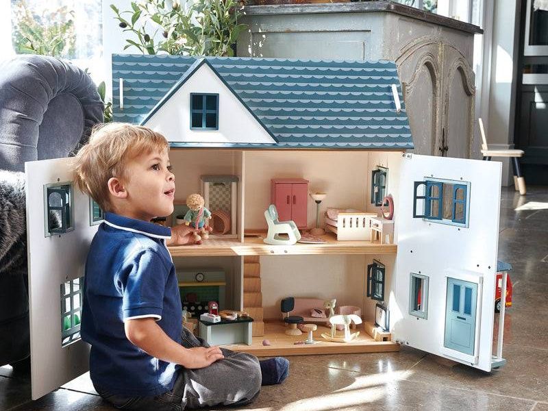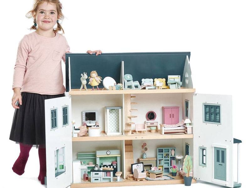 A large, spacious and ultra-stylish home that is the perfect addition to a playroom or bedroom. The Dovetail has 6 rooms ready to be filled with furniture for hours for imaginative play. The design features beautifully printed plywood floors and gender-neutral colours that make this an exceptional home for a doll family.