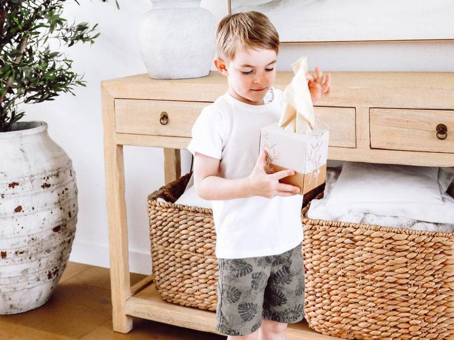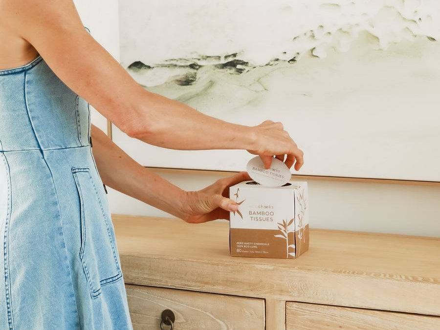 Eco Cheeks' Bamboo Tissues offer a gentle, eco-friendly solution for sensitive noses. Made from 100% bamboo, the world’s most sustainable material, these unbleached, 3-ply tissues provide strength to prevent blowouts while remaining soft to avoid irritation. Each carton includes 9 cube boxes with 80 sheets per box, ensuring long-lasting comfort without harming the environment.