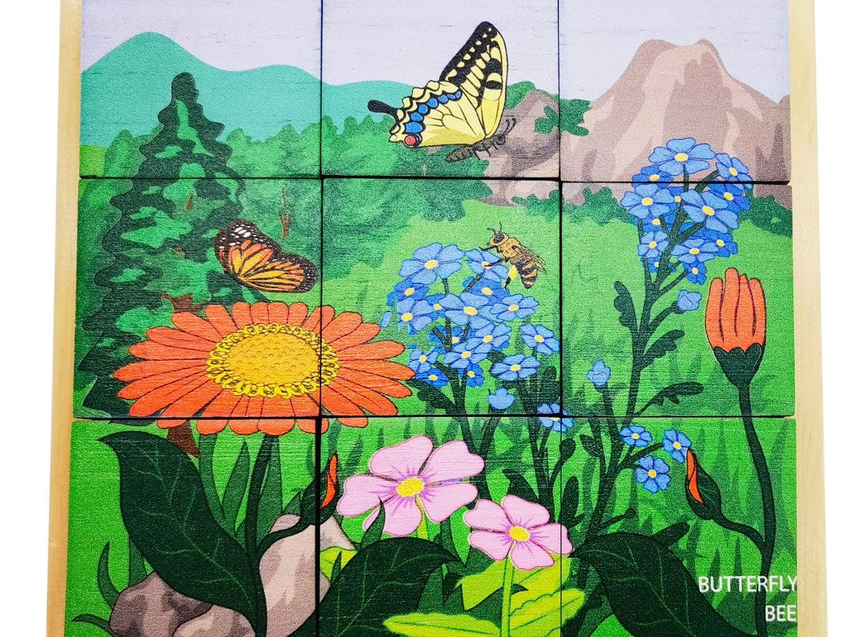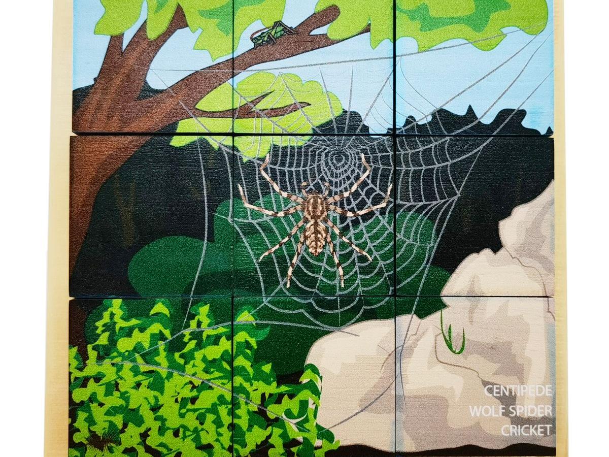 This puzzle has it all! Featuring 6 interconnected scenes inspired by our environment, children can explore the fascinating world of mini beasts like caterpillars, beetles, spiders, and worms while solving fun challenges. Mix and match pieces to create new scenarios, all printed with non-toxic heat transfer technology and sealed with a durable matte varnish for lasting play. Encourage problem-solving and imaginative storytelling for endless hours of entertainment!