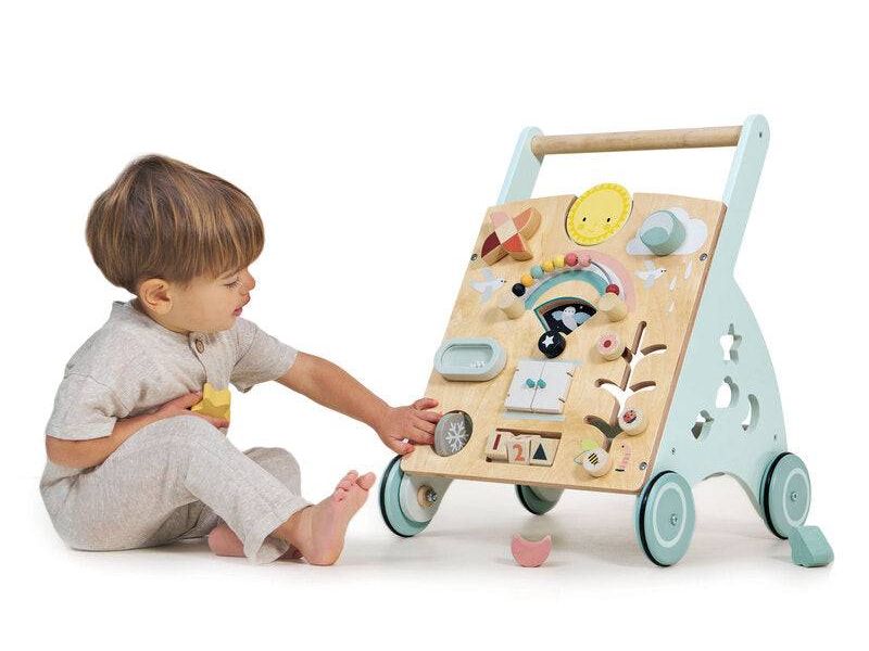 A bright and stylish activity walker designed for toddlers learning to take their first steps. Inspired by the weather, the design features;