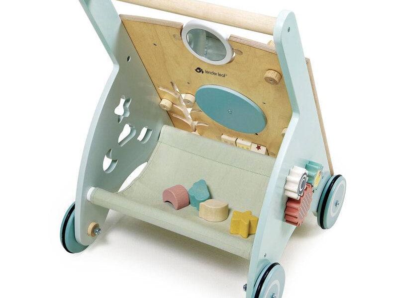 Also included is 4 shape sorters on one side of the buggy, and on the other, 3 rotating cogs. A fabric canopy at the back provides extra storage. A great item for building gross motor skills through inspiring walking and fine motor skills from the many interactive features.