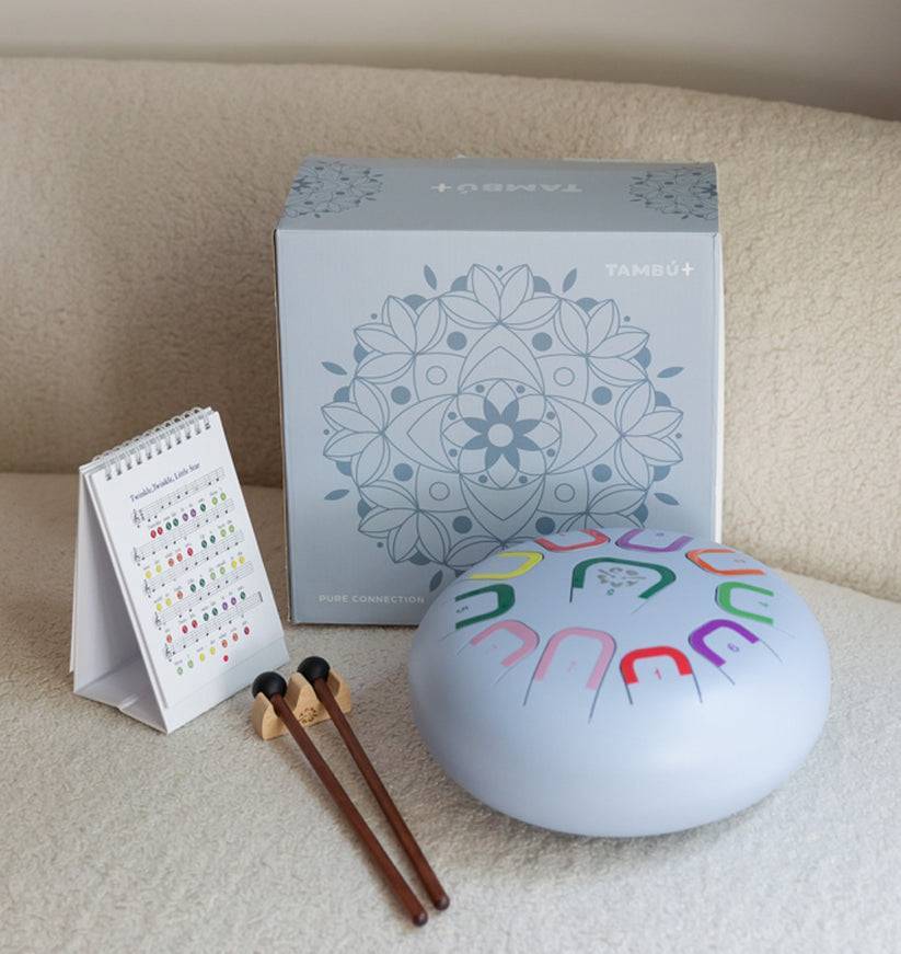 Tambú is an innovative tongue drum designed for all ages. It allows you to create harmonious melodies from the very first moment, with no prior musical knowledge required. Its colour and number coding system makes learning intuitive and fun.