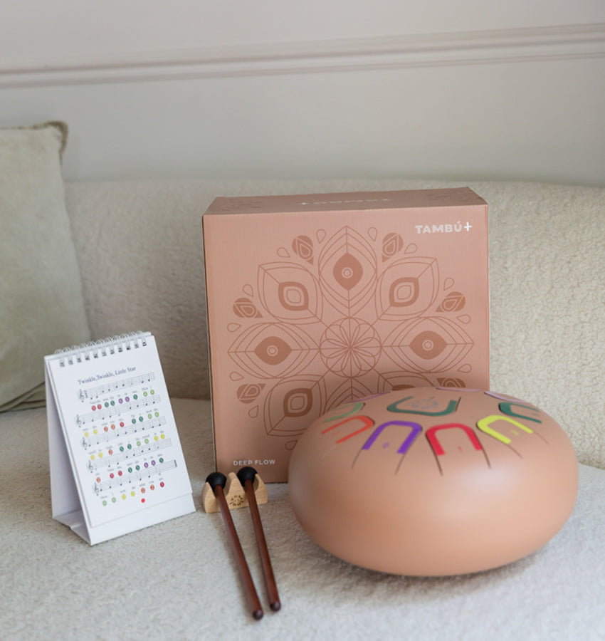Tambú is an innovative tongue drum designed for all ages. It allows you to create harmonious melodies from the very first moment, with no prior musical knowledge required. Its colour and number coding system makes learning intuitive and fun.