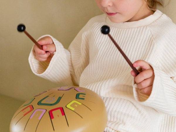 Tambú is an innovative tongue drum designed for all ages. It allows you to create harmonious melodies from the very first moment, with no prior musical knowledge required. Its colour and number coding system makes learning intuitive and fun.