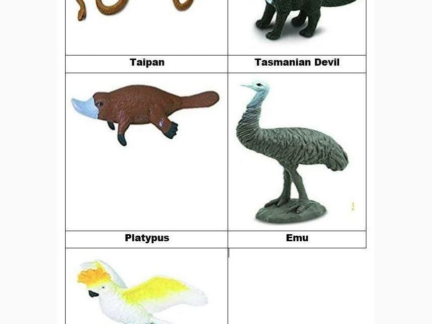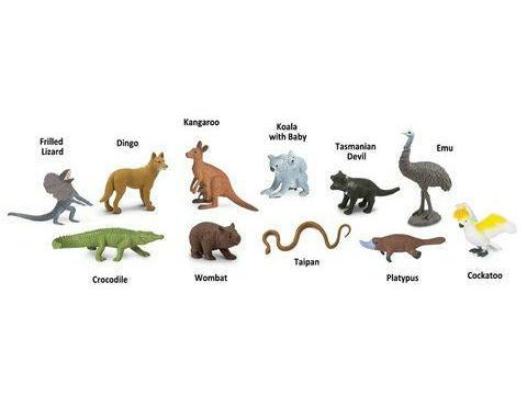 - The next best thing to visiting Australia, this Toob brings its most iconic wildlife to the palm of your hand. This Toob includes an emu, Tasmanian devil, kangaroo, dingo, frilled lizard, cockatoo, platypus, taipan, wombat, crocodile, and a koala with a baby.