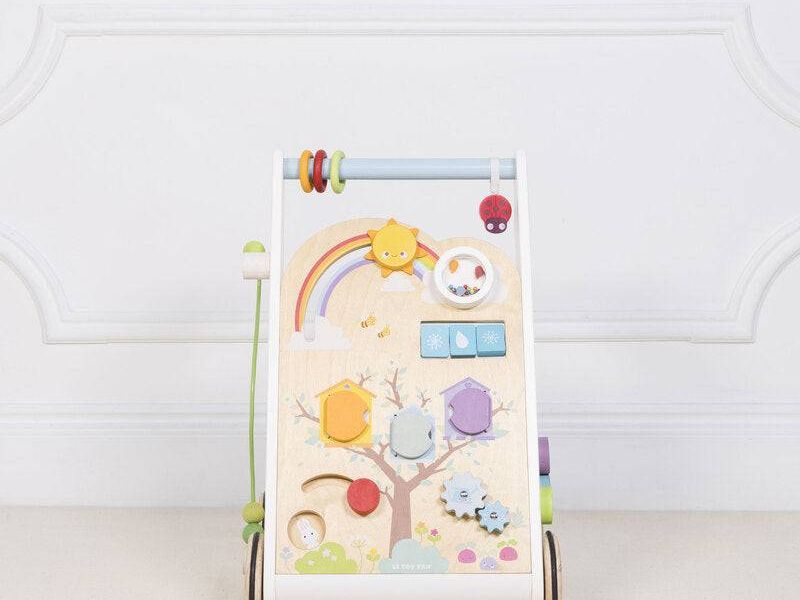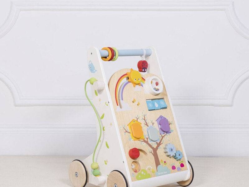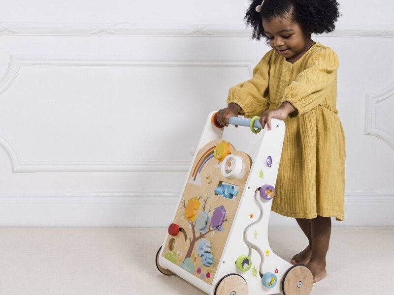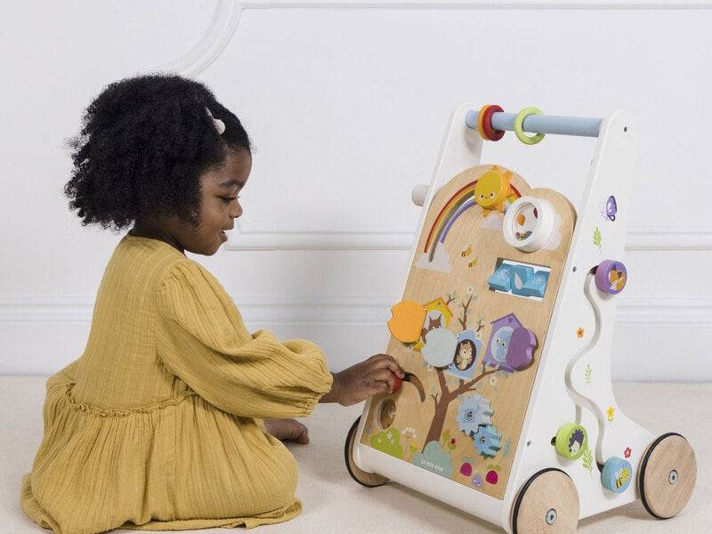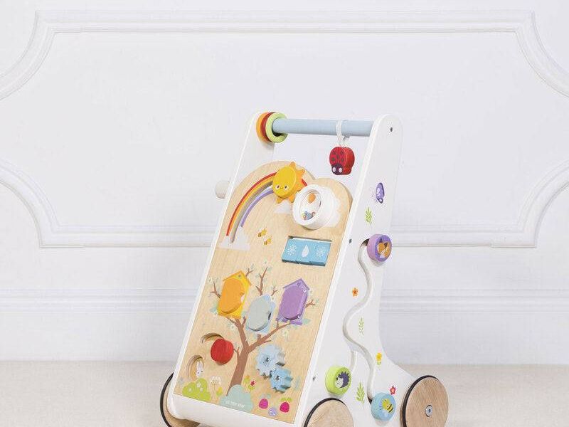 This wonderful and sweet activity walker is the perfect all in one toy for an adventurous toddler. The beautifully balanced walker is designed with a lovely nature garden theme with sweet woodland animals to delight.
